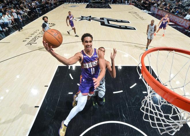 次節(jié)比賽,吉萊斯皮內(nèi)外開(kāi)花連續(xù)得分,引領(lǐng)一波13-4攻勢(shì)擴(kuò)大11分優(yōu)勢(shì),瓦塞爾三分命中。格林中投得分,馬刺一波7-0攻勢(shì)追分,布克中投命中,文班亞馬造犯規(guī)罰球追到45-47。布克接連得分重新擴(kuò)大8分優(yōu)勢(shì),馬刺一波7-2攻勢(shì)追到差3分,太陽(yáng)連得4分,馬刺單節(jié)28-33輸?shù)?分,上半場(chǎng)結(jié)束馬刺52-59落后太陽(yáng)。前兩節(jié)比賽,文班亞馬16+4與福克斯8分,吉萊斯皮17分與格林13+6、布克僅6分。