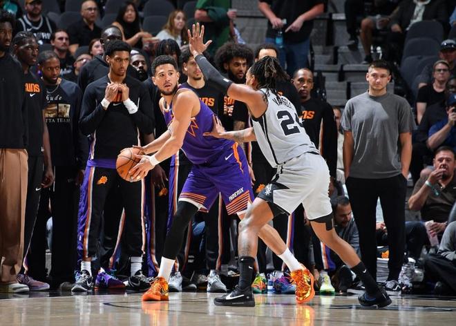 馬刺過(guò)去3場(chǎng)連贏黃蜂、快船與國(guó)王收獲3連勝,太陽(yáng)過(guò)去3場(chǎng)連輸猛龍、凱爾特人與森林狼遭遇3連敗,本賽季前三次交鋒馬刺1勝2負(fù)處于下風(fēng)。本場(chǎng)馬刺缺少加西亞與卡斯?fàn)?,太?yáng)缺少奧尼爾、阿倫、狄龍與馬威。首節(jié)開(kāi)局馬刺率先取得10-5領(lǐng)先,尚帕尼三分開(kāi)火擴(kuò)大13-7領(lǐng)先,馬刺持續(xù)壓制維持21-15領(lǐng)先。格林接連得分引領(lǐng)一波11-3攻勢(shì)反超比分,首節(jié)結(jié)束馬刺24-26落后太陽(yáng)。首節(jié)太陽(yáng)22中11,其中三分6中4,格林5中4得到9分與布克5中1僅得到2分2失誤;馬刺24中10,其中三分8中2,文班亞馬2中2得到6分3籃板1搶斷。