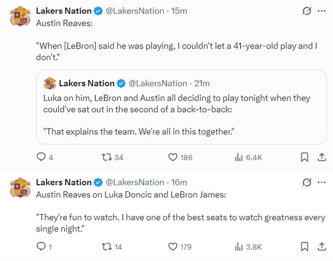 里夫斯則談到41歲的勒布朗愿意出戰(zhàn)背靠背第二場:這就是我們團結一心的原因,我們不可能讓一位41歲的老將去打背靠背G2而我不去打,雖然我們都可以在這場比賽中輪休,可勒布朗不想休息,那我們必然同仇敵愾的出戰(zhàn)。每個夜晚看他打球都是一種享受。