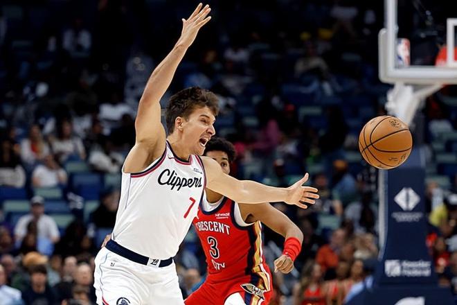 博格達(dá)諾維奇在上賽季中段的一筆交易中被亞特蘭大老鷹送到了快船。在加盟快船之后,博格達(dá)諾維奇在上賽季的NBA常規(guī)賽中總共出場(chǎng)30次,場(chǎng)均出場(chǎng)時(shí)間達(dá)到了25分鐘,場(chǎng)均數(shù)據(jù)為11.4分3.1籃板3.2助攻0.7搶斷0.2蓋帽,還有1.2次失誤和2.3次犯規(guī),投籃命中率47.4%,三分命中率42.7%,罰球命中率87.5%。到了季后賽,博格達(dá)諾維奇總共出場(chǎng)7次,場(chǎng)均出場(chǎng)時(shí)間達(dá)到了16.7分鐘,場(chǎng)均數(shù)據(jù)為6.4分2.9籃板2.1助攻0.4搶斷,還有1.6次失誤和3.6次犯規(guī),投籃命中率36.4%,三分命中率29.2%,罰球命中率85.7%。本賽季開季至今,博格達(dá)諾維奇受到傷病和戰(zhàn)術(shù)安排方面的影響在前70場(chǎng)比賽中總共出場(chǎng)20次,場(chǎng)均出場(chǎng)時(shí)間達(dá)到了21分鐘,場(chǎng)均數(shù)據(jù)為7.7分2.8籃板2.5助攻0.5搶斷0.1蓋帽,還有1.3次失誤和2.2次犯規(guī),投籃命中率38.4%,三分命中率33.3%,罰球命中率80%。