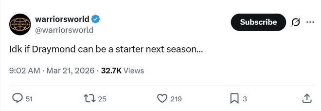 面對(duì)追夢(mèng)這樣的表現(xiàn),勇士媒體warriorsworld賽后都不禁發(fā)問(wèn):“我不知道,追夢(mèng)下個(gè)賽季是否還會(huì)首發(fā)?!?/p>