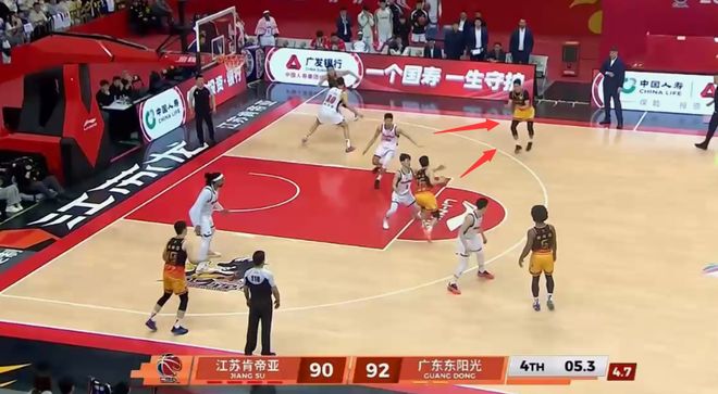 而正是因?yàn)橛行旖堋⒍艥?rùn)旺、薩林杰這樣的有明顯防守短板的球員在(如身高矮,腳步不夠快),廣東隊(duì)就必須在防守策略上作出讓步,關(guān)鍵時(shí)刻無限換防或者盯人防守會(huì)被抓錯(cuò)位,只能采取聯(lián)防,去制造對(duì)手持球人失誤,或者賭對(duì)手空位三分不進(jìn)。