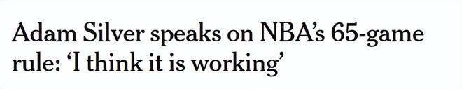 北京時(shí)間3月26日,NBA總裁亞當(dāng)-蕭華表示,聯(lián)盟現(xiàn)行的65場(chǎng)出戰(zhàn)資格規(guī)則目前運(yùn)行成功,盡管本周球員工會(huì)公開(kāi)呼吁修改這一規(guī)定,但他暫時(shí)無(wú)意做出調(diào)整。