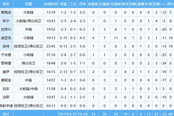 山西隊(duì)數(shù)據(jù)如下: