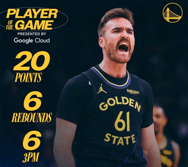 首先是包括斯潘塞在內(nèi)的一眾奇兵提供了可觀的三分火力,全場斯潘塞11中6,三分10中6獨攬20分6板4助2搶斷全能數(shù)據(jù),賽后被勇士隊評選為全場最佳。
