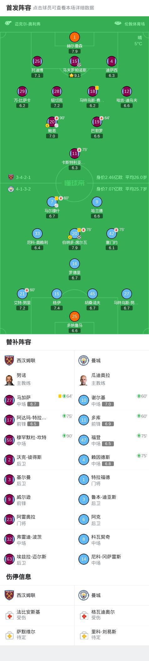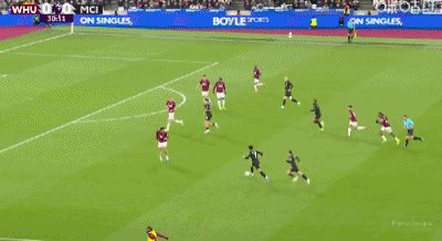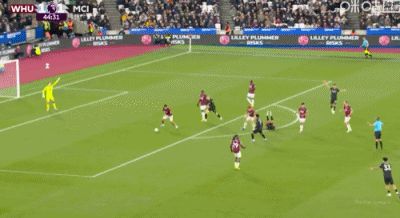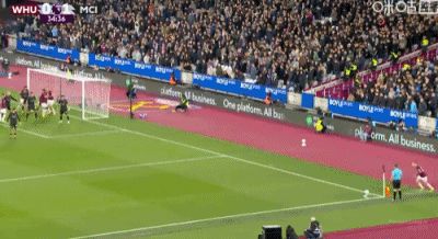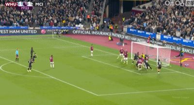 第35分鐘,馬夫羅帕諾斯頭球破門,西漢姆聯(lián)1-1閃電扳平曼城