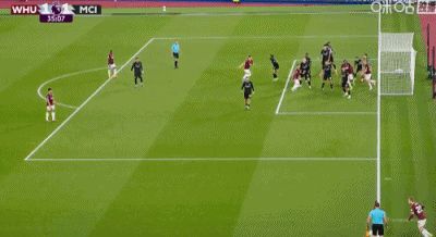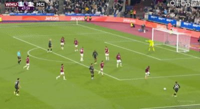 第31分鐘,B席禁區(qū)左路吊射破門,曼城1-0西漢姆聯(lián)