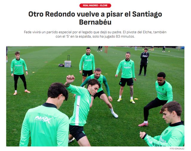 北京時(shí)間3月15日凌晨4點(diǎn),西甲第28輪,皇馬主場迎戰(zhàn)埃爾切。賽前,《阿斯報(bào)》指出,埃爾切陣中,有皇馬球迷熟悉的“星二代”。費(fèi)爾南多-雷東多的兒子費(fèi)德里科-雷東多(小雷東多),就在該隊(duì)效力。