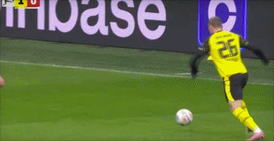 第13分鐘,阿德耶米射門(mén)打在達(dá)門(mén)臉上入網(wǎng),多特1-0領(lǐng)先