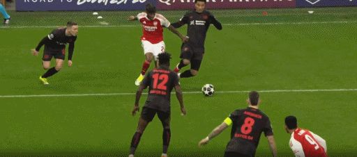 第45分鐘,薩卡帶球長(zhǎng)驅(qū)直入,最后被搶斷