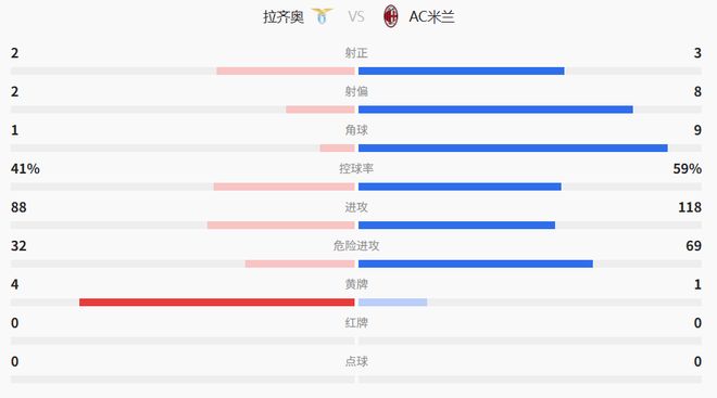 對(duì)比來看米蘭的確是有數(shù)字上的優(yōu)勢(shì),射門次數(shù)及控球率比敵人高了很多。制造機(jī)會(huì)也是敵人兩倍,可惜了的。