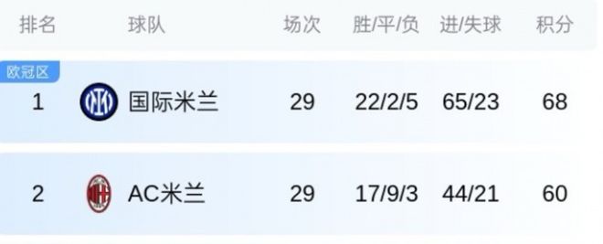 - 積分榜丨國米再丟分,看看現(xiàn)在積分榜