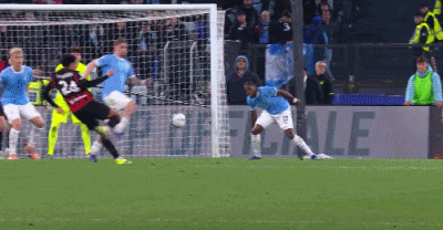 第36分鐘,馬爾蒂尼突入禁區(qū)前低射,邁尼昂沒收皮球