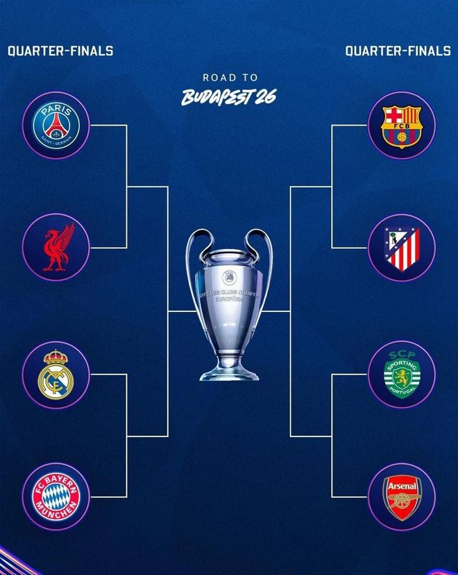 歐冠八強(qiáng)對陣出爐:巴薩、拜仁、利物浦與馬競攜手晉級
