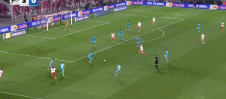 第30分鐘,格魯達(dá)斜傳至禁區(qū),鮑姆加特納停球射門(mén)一氣呵成,萊比錫3-0