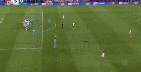 第21分鐘,勞姆左路傳中,鮑姆加特納高高躍起頭槌破門(mén),萊比錫2-0