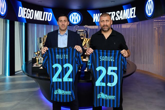 兩位冠軍,兩位傳奇,兩位老友:迭戈-米利托與瓦爾特-薩穆埃爾,21世紀(jì)初國際米蘭的核心人物,他們是藍(lán)黑軍團(tuán)2010年奪得五冠王的靈魂所在。