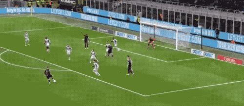 第36分鐘,帕夫洛維奇外腳背撩射,皮球劃過一道優(yōu)美的弧線,越過門將頭頂,米蘭取得領(lǐng)先。