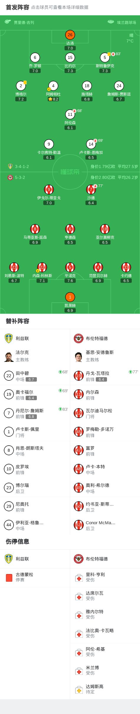 - 利茲聯(lián)0-0布倫特福德,主隊連續(xù)4場英超被零封,小蜜蜂2射正