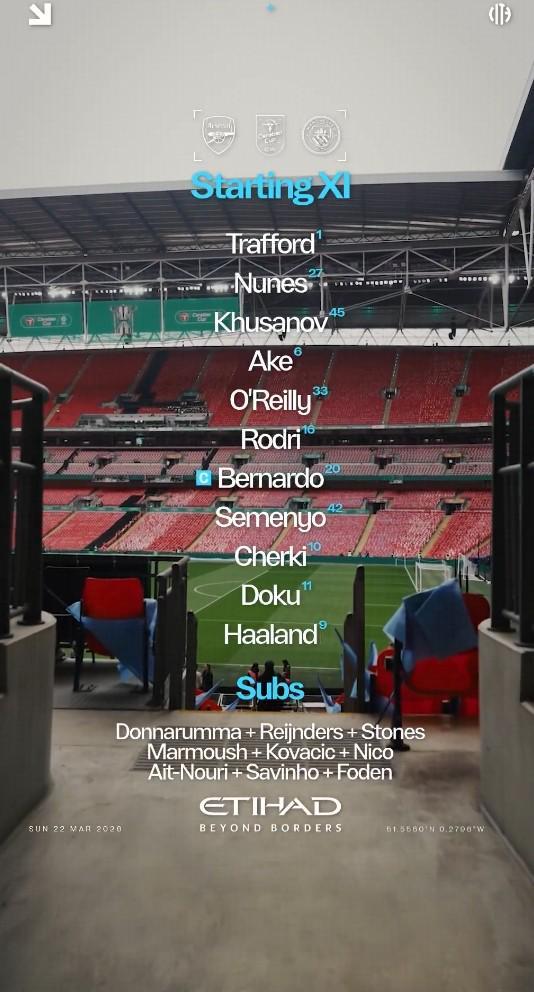 替補(bǔ):25-多納魯馬、4-賴因德斯、5-斯通斯、7-馬爾穆什、8-科瓦契奇、14-尼科-岡薩雷斯、21-努里、26-薩維尼奧、47-福登