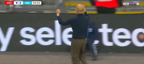 短時間連進2球,見慣大場面的瓜迪奧拉也難掩激動之情,在場邊緊握雙拳振臂高呼!