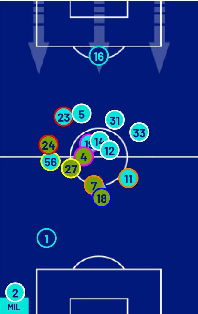 在意甲第30輪對(duì)陣都靈的比賽中,阿萊格里通過陣型的微調(diào)讓球隊(duì)打入3粒進(jìn)球并全取三分。雖然官方給出的米蘭陣型還是3-5-2,但從賽后的站位分布圖可以看出,紅黑軍團(tuán)的陣型更加接近4-3-3。