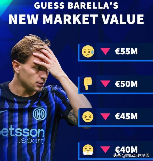賽前,《轉(zhuǎn)會市場》等身價評估機構(gòu)就在熱炒,巴雷拉的身價連年下滑,下次更新可能還會更低。