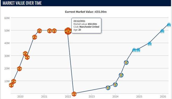 隨后在加盟赫塔費和馬賽之后,憑借出色的表現(xiàn),他的身價逐漸上升,在去年12月,他的身價上漲到5000萬歐,追平了此前在曼聯(lián)的巔峰身價,如今,他的身價再次上漲了500萬歐元。