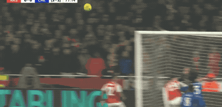 第77分鐘,阿森納下半場的第一次射門就接近破門。加布里埃爾的頭球,正好砸在了庫庫雷利亞的頭上。
