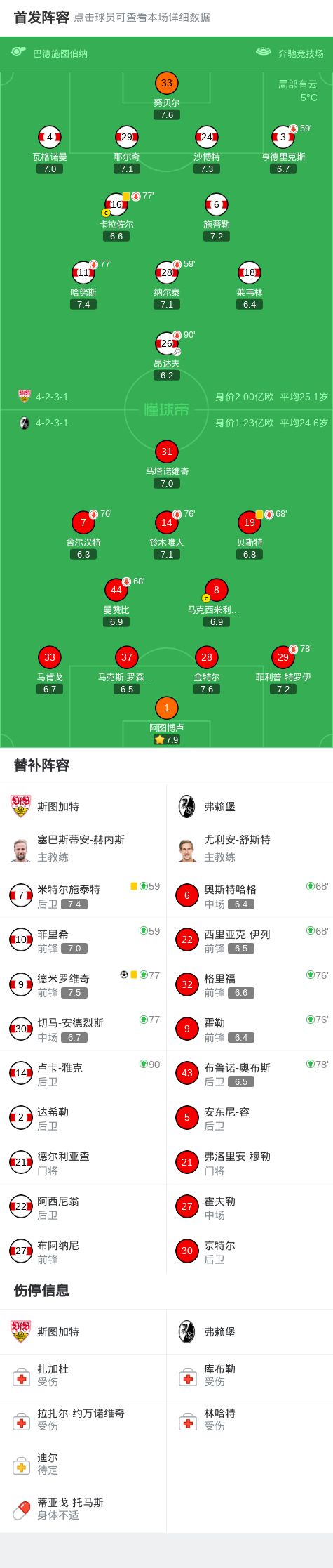 斯圖加特1-0弗賴堡,德米羅維奇絕殺