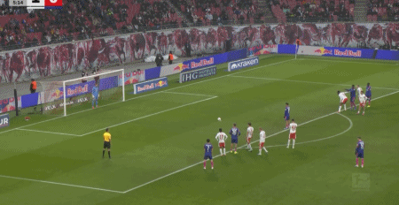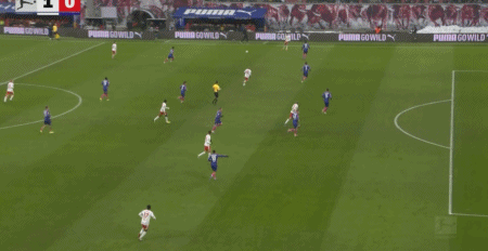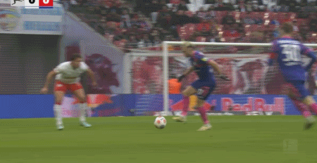 第40分鐘,康拉德-哈德頭球破門,萊比錫1-0領(lǐng)先