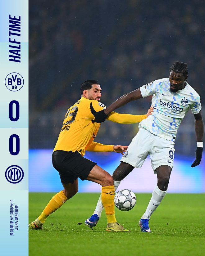 上半場比賽結(jié)束,我們暫時(shí)客場0比0戰(zhàn)平多特蒙德。