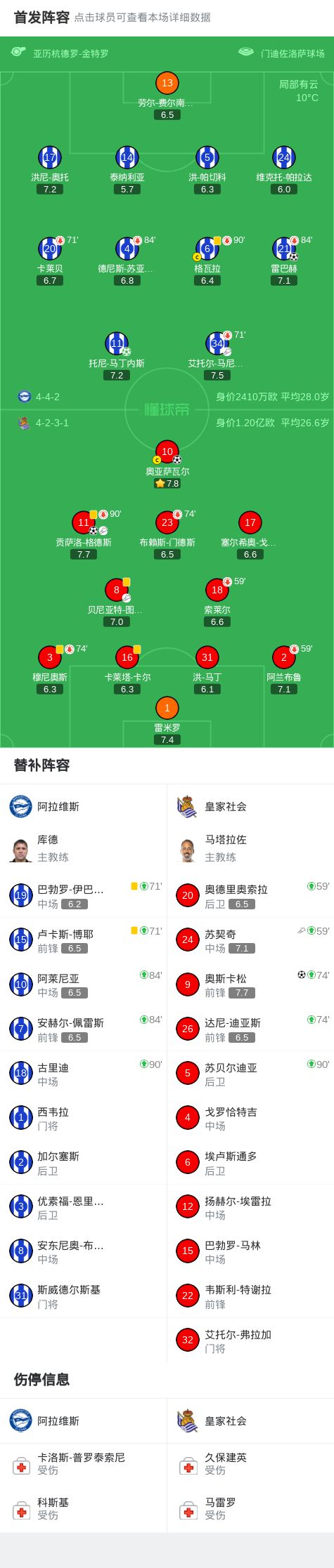 - 皇家社會3-2逆轉(zhuǎn)阿拉維斯,奧斯卡松破門,貢薩洛-格德斯1傳1射