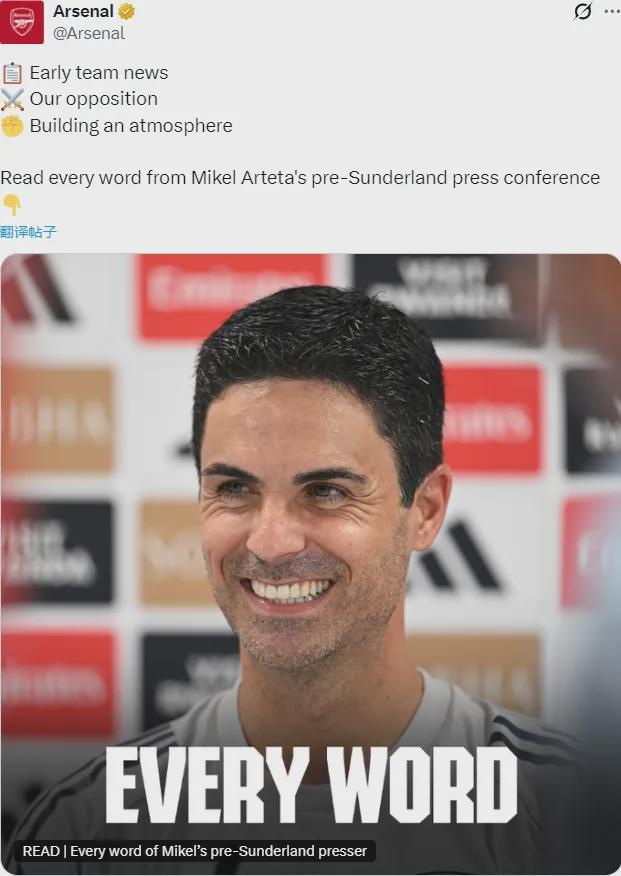 阿爾特塔出席了賽前新聞發(fā)布會(huì),我們來看重要的消息。