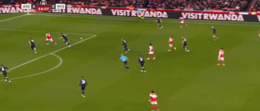 第27分鐘,打花了,內(nèi)爾高長傳,熱蘇斯單刀破門,阿森納4-0維岡競技