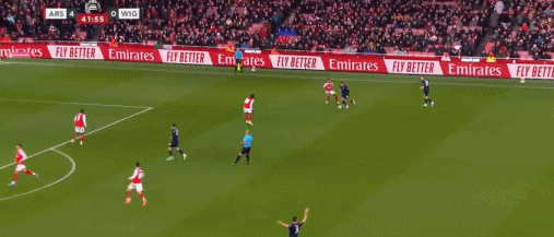 第23分鐘,熱蘇斯搶點(diǎn),亨特門前自擺烏龍,阿森納3-0維岡競技