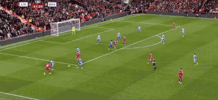 第40分鐘,還是來(lái)自薩拉赫的傳球,基耶薩的射門(mén),被范赫克伸出一腳,完成解圍。