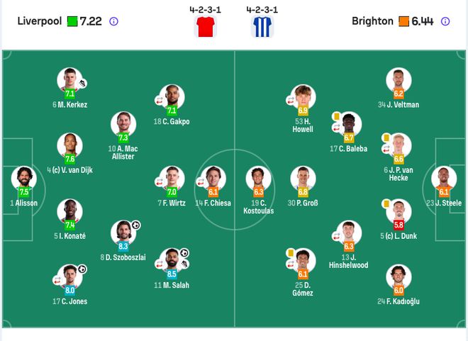 利物浦首發(fā):1-阿利松、4-范戴克、5-科納特、6-凱爾凱茲、7-維爾茨(72’2-戈麥斯)、8-索博斯洛伊、10-麥卡利斯特、11-薩拉赫(72’73-恩古莫哈)、14-基耶薩(72’22-?;倏耍?7-瓊斯(89’42-尼奧尼)、18-加克波(89’47-卡爾文·拉姆塞)。