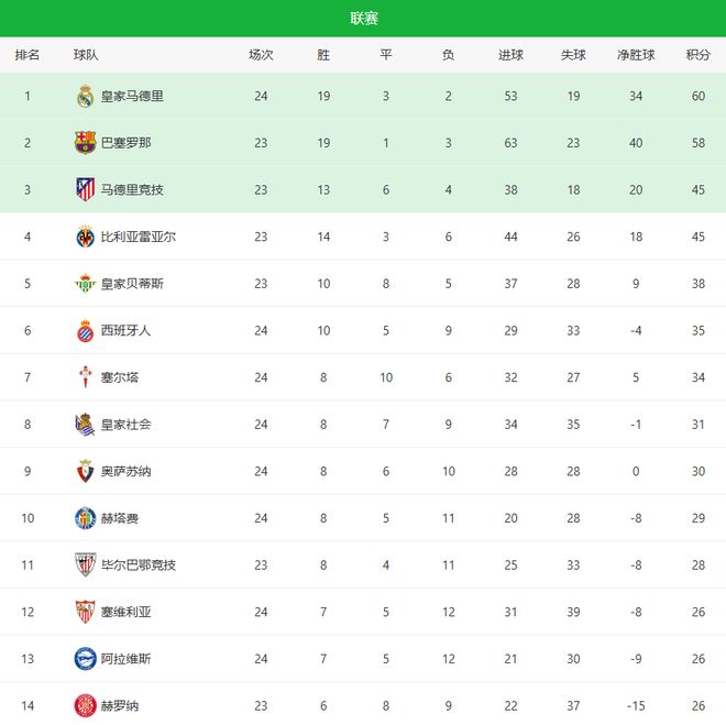- 4-1大勝!3-2絕殺!西甲意甲最新積分榜:皇馬登頂,國米拿下德比