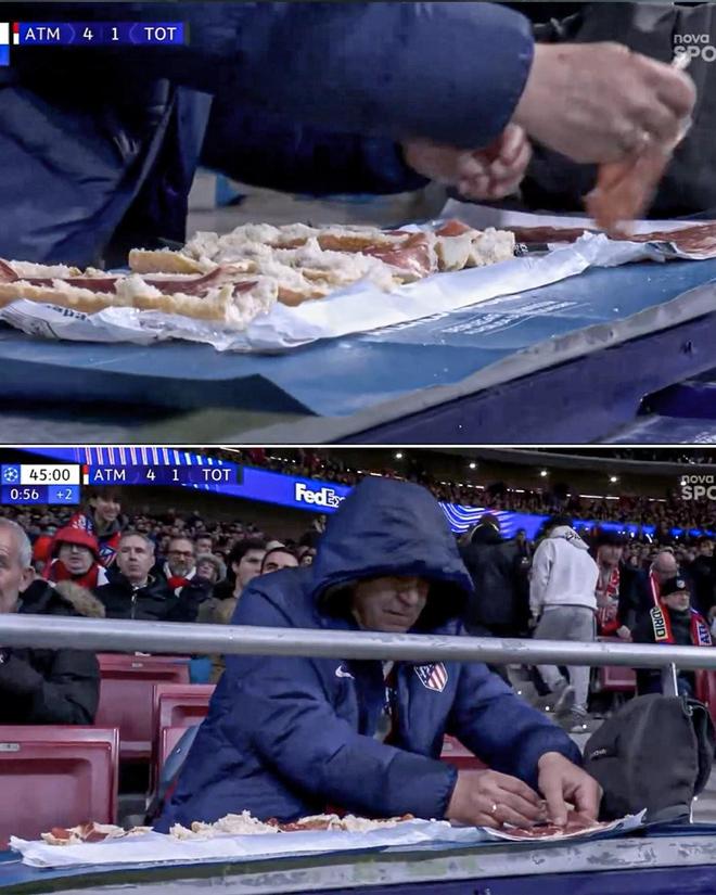 北京時間3月11日,歐冠聯(lián)賽1/8決賽首回合,馬德里競技在大都會球場5-2大勝托特納姆熱刺。在比賽上半場即將結(jié)束時,一名馬競球迷在看臺上悠閑地制作三明治,被官方轉(zhuǎn)播鏡頭實時記錄了下來。