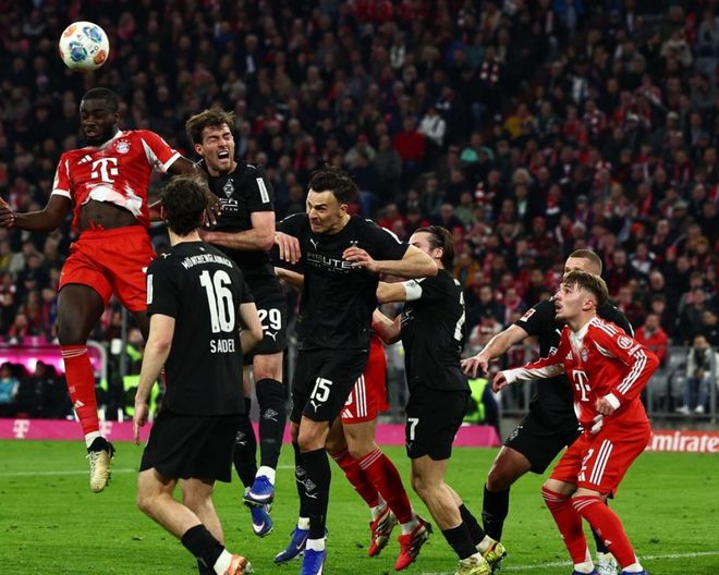 比賽開始后不久,卡爾就取得進(jìn)球。但是,因?yàn)樵轿槐慌袩o效。隨后,卡爾再次獲得機(jī)會(huì),這次他的射門被門將沒收。第32分鐘,拜仁取得進(jìn)球。格雷茨卡在禁區(qū)外精妙挑傳,迪亞斯后插上,直接凌空抽射,皮球應(yīng)聲入網(wǎng)!這次配合非常漂亮!4分鐘后,雅克松的低射被門將撲出。隨后,迪亞斯助攻萊默爾進(jìn)球擴(kuò)大比分。半場結(jié)束,拜仁2-0領(lǐng)先門興格拉德巴赫。