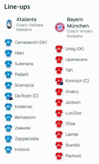 北京時間3月11日4:00,歐冠1/8決賽首回合,拜仁慕尼黑做客新百倫競技場挑戰(zhàn)亞特蘭大,本場主裁判為埃斯科斯,賽前雙方首發(fā)出爐。