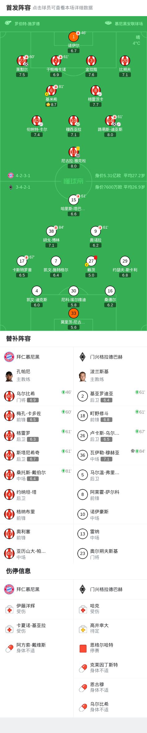 第62分鐘,拜仁連換三人,卡多佐、斯塔尼希奇、格雷羅上場(chǎng)