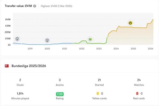 恩梅查與多特蒙德的合同將持續(xù)至2028年,不過他在德國的長期未來仍存在不確定性,歐洲多家俱樂部已開始對這位近幾個賽季狀態(tài)回升的球員表達(dá)興趣。