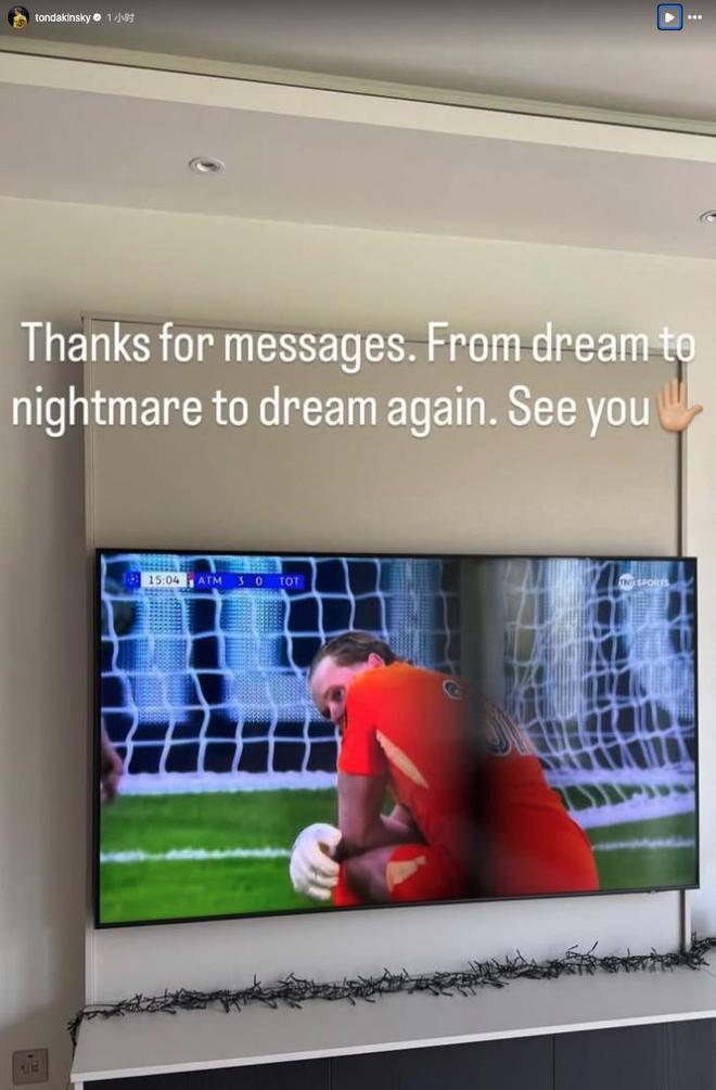 - 熱刺門將金斯基社媒:從夢(mèng)想,到噩夢(mèng),再到再次回到夢(mèng)想